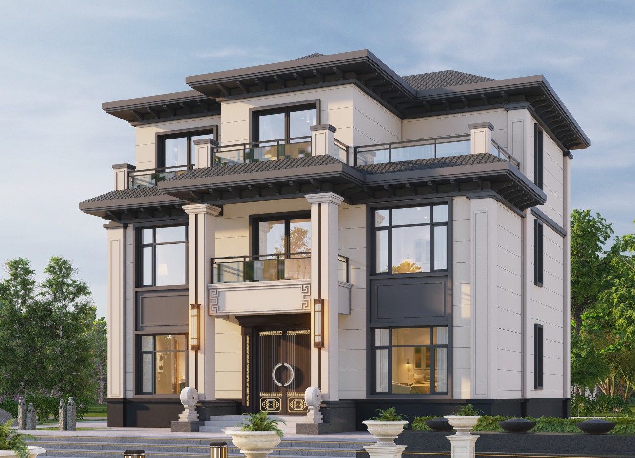 长春17 三层新中式(10x12米)-【易设计】
