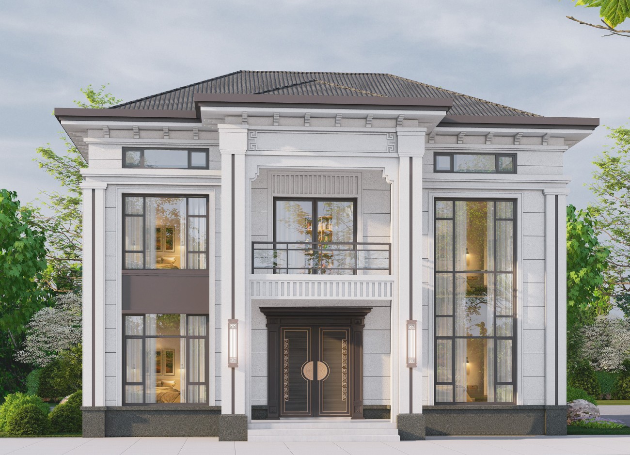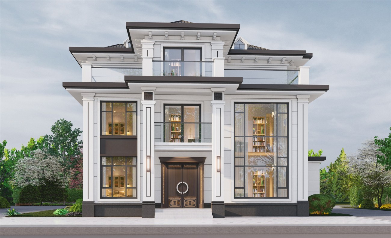 长春12 新中式两层半(12.8x13.06米)-【易设计】